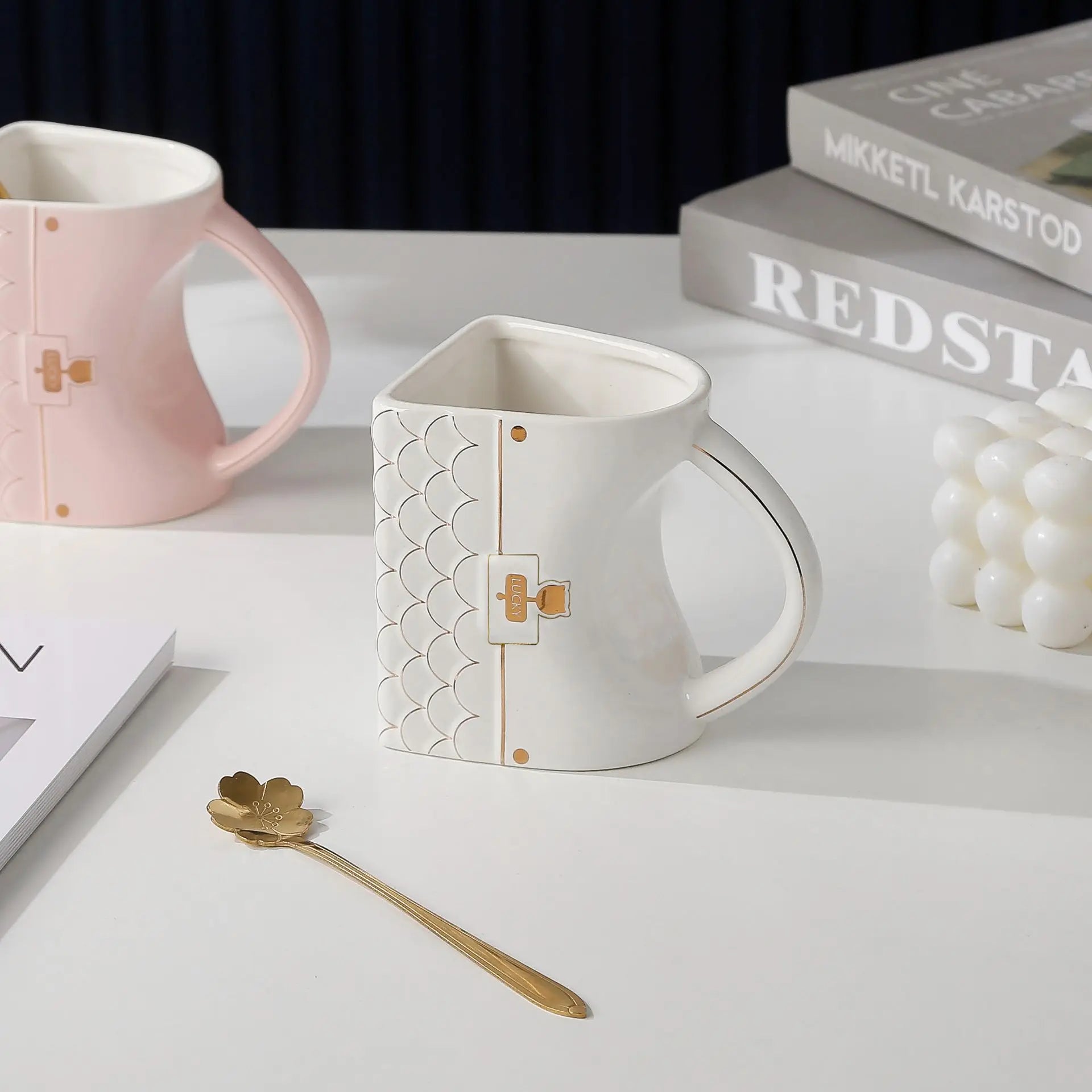 דרך מושלמת להתחיל את הבוקר, ספל קפה מקסים המפוסל בעבודת יד מיומנת בקרמיקה איכותית, בהשראת עיצוב תיק צד יוקרתי. הספל מגיע עם כפית תלתן מקסימה, מלאה באנרגיות טובות ומרימות לבוקר שלך.
